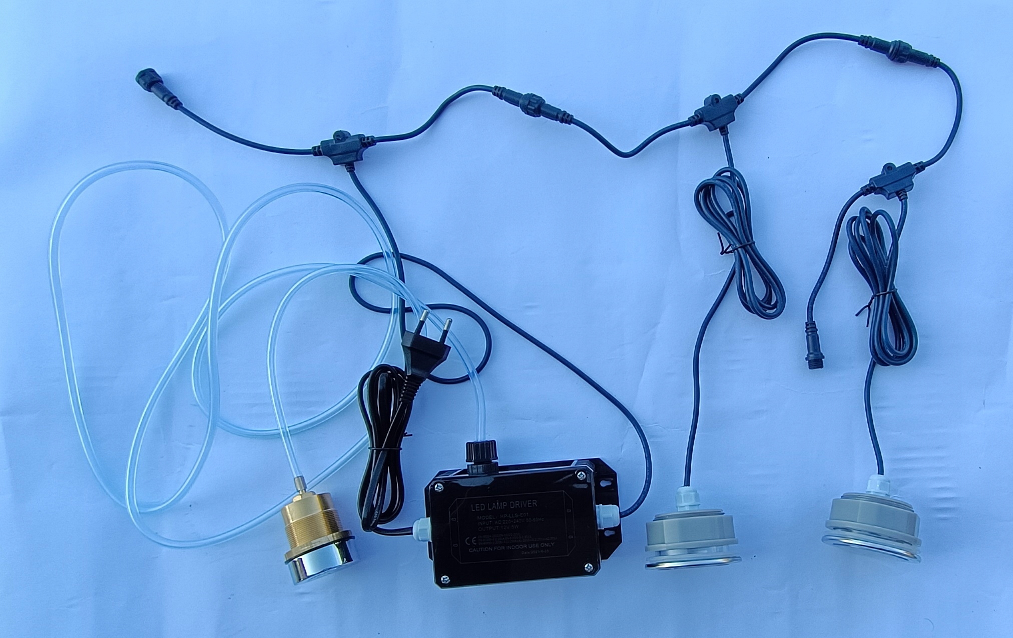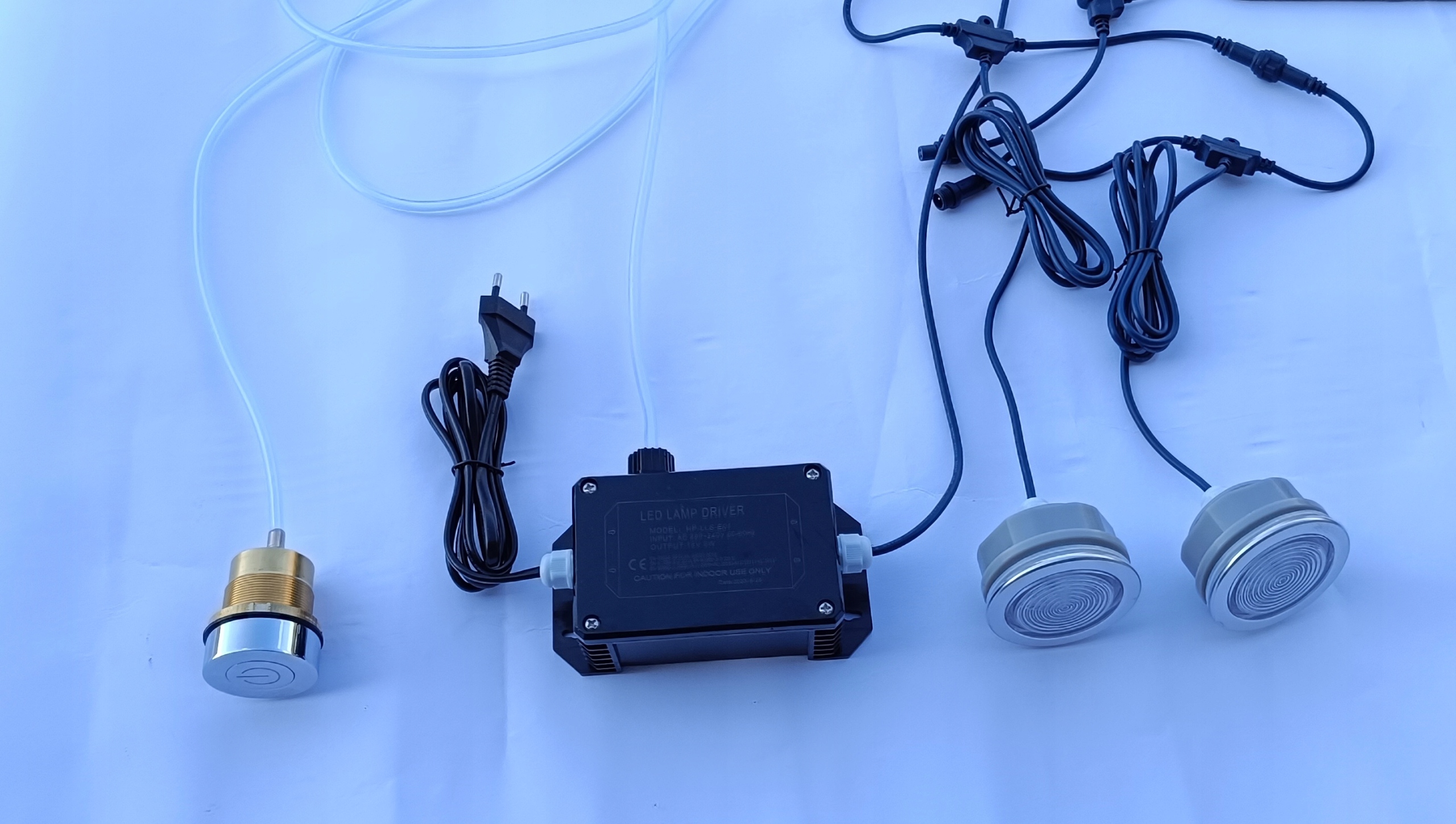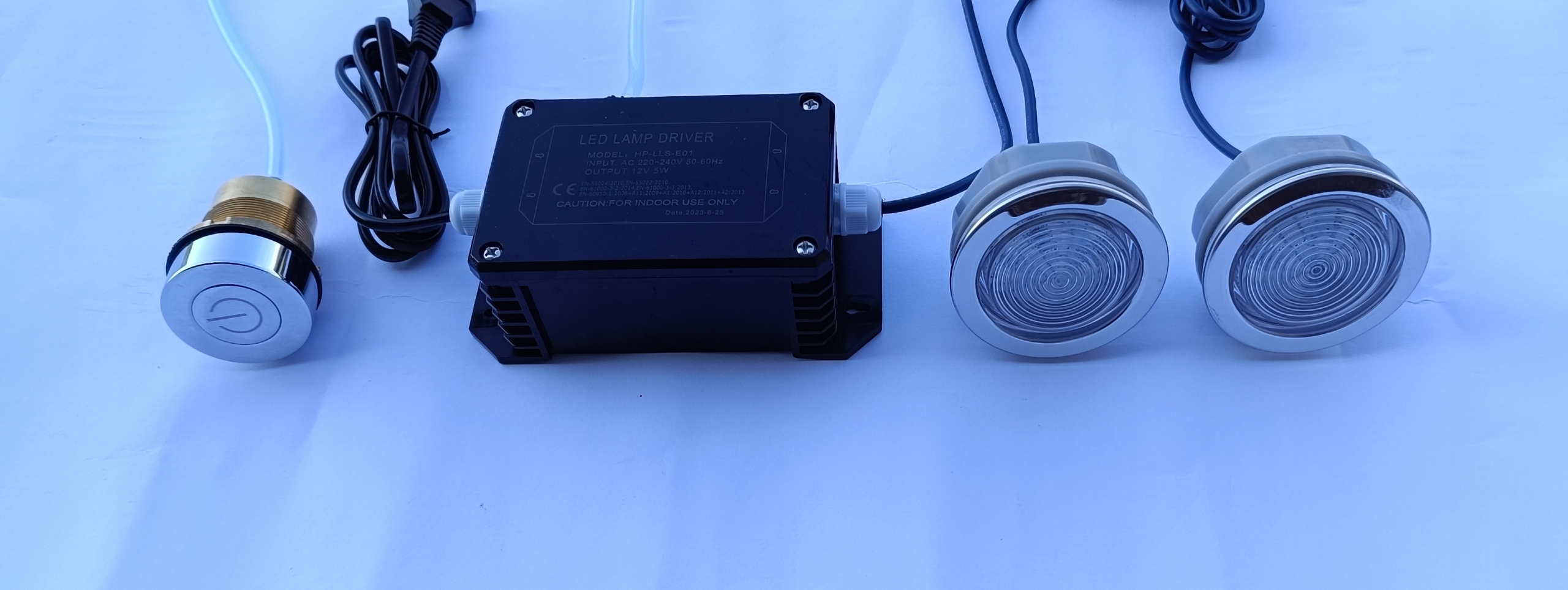 2 x Światło LED + 1 x sterownik + 1 x MOSIĘŻNY przycisk pneumatyczny załączający światło + wężyk + podkładka ze stali nierdzewnej pod przycisk pneumatyczny z oznaczeniem LED