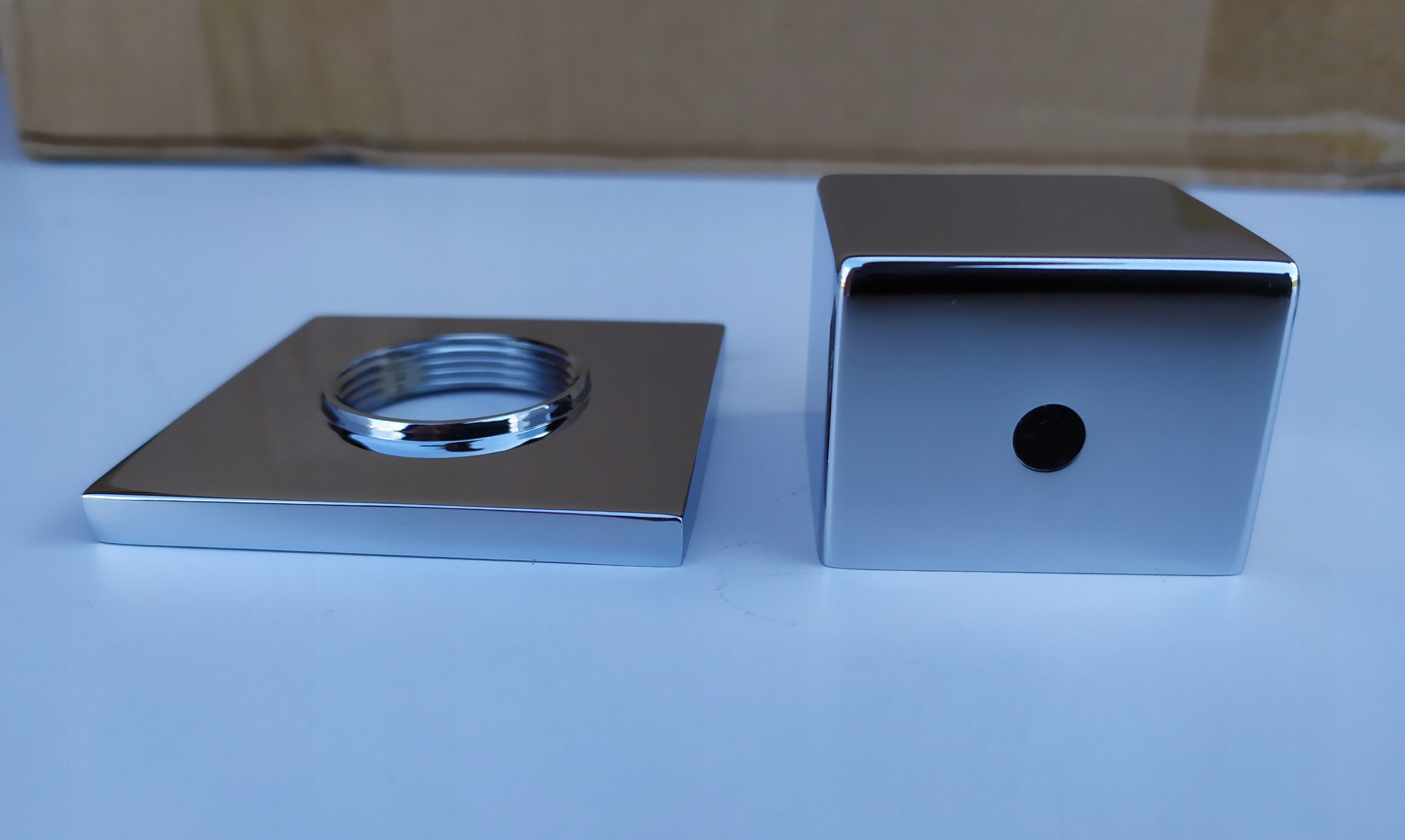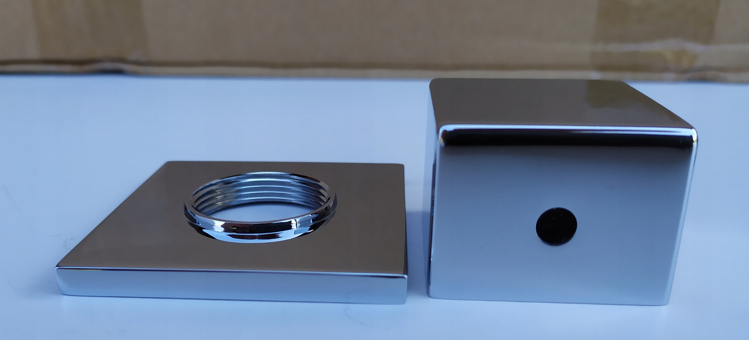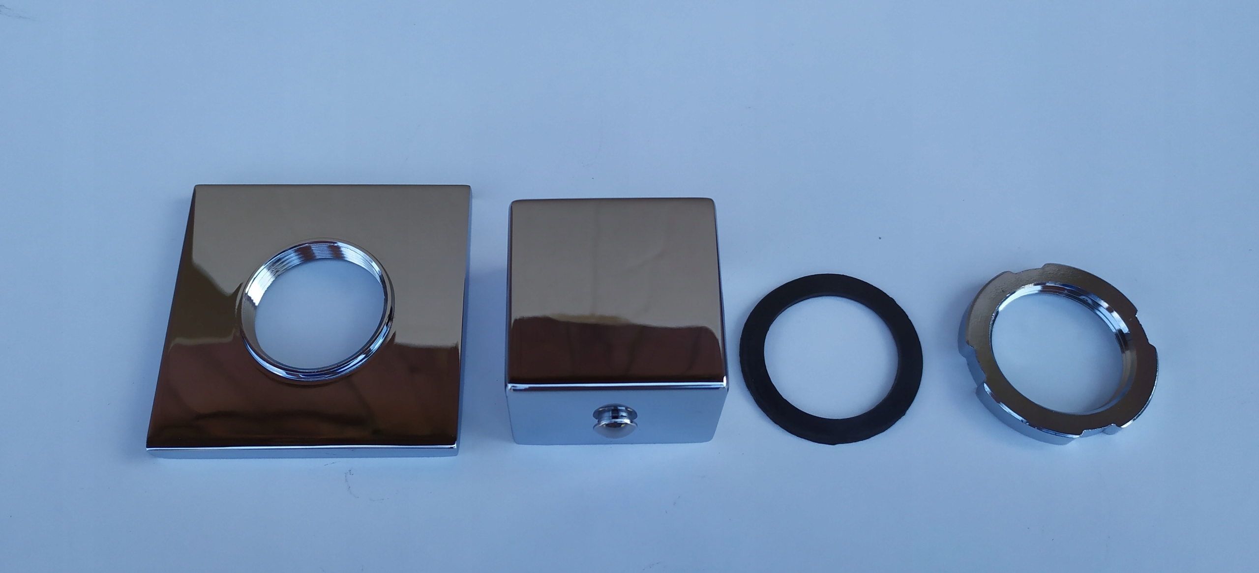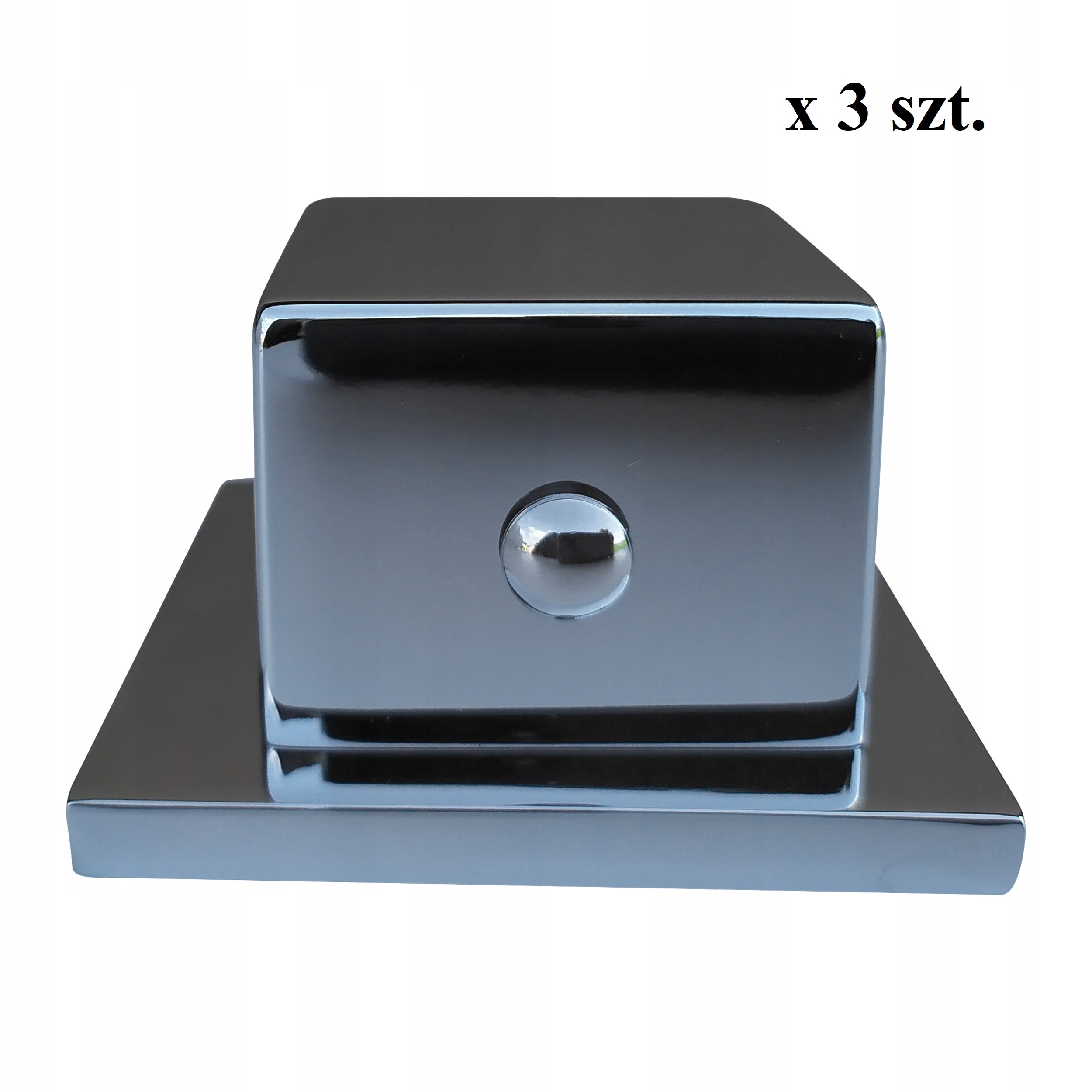 3 kwadratowe pokrętła z zaślepkami do baterii wraz z podkładkami, uszczelkami oraz nakrętkami kontrującymi do wanny z hydromasażem oraz do kabin prysznicowych