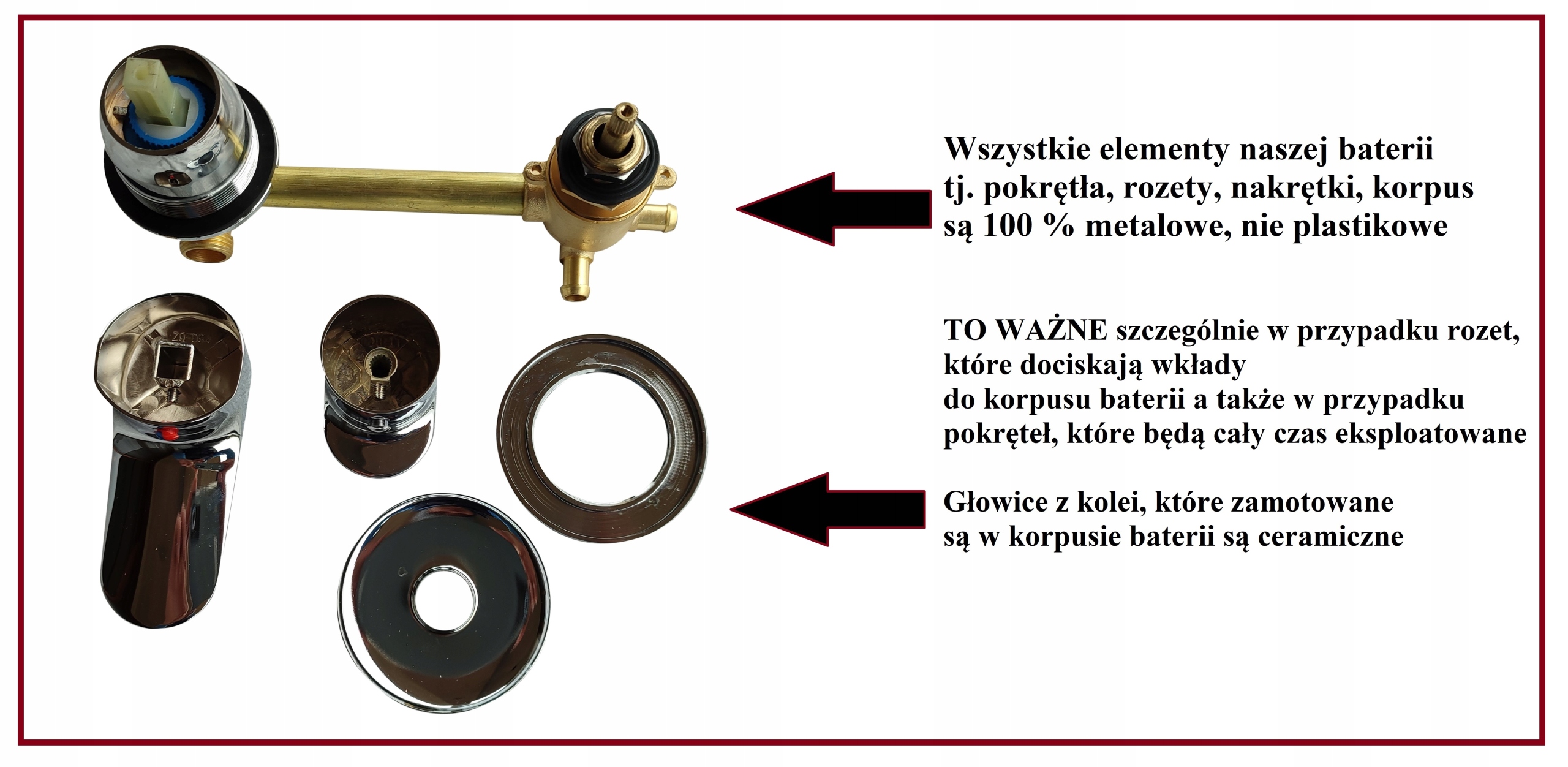 Bateria dostarczana jest z zamontowanymi głowicami w korpusie, należy tylko zamontować rozety, uszczelki oraz pokrętła