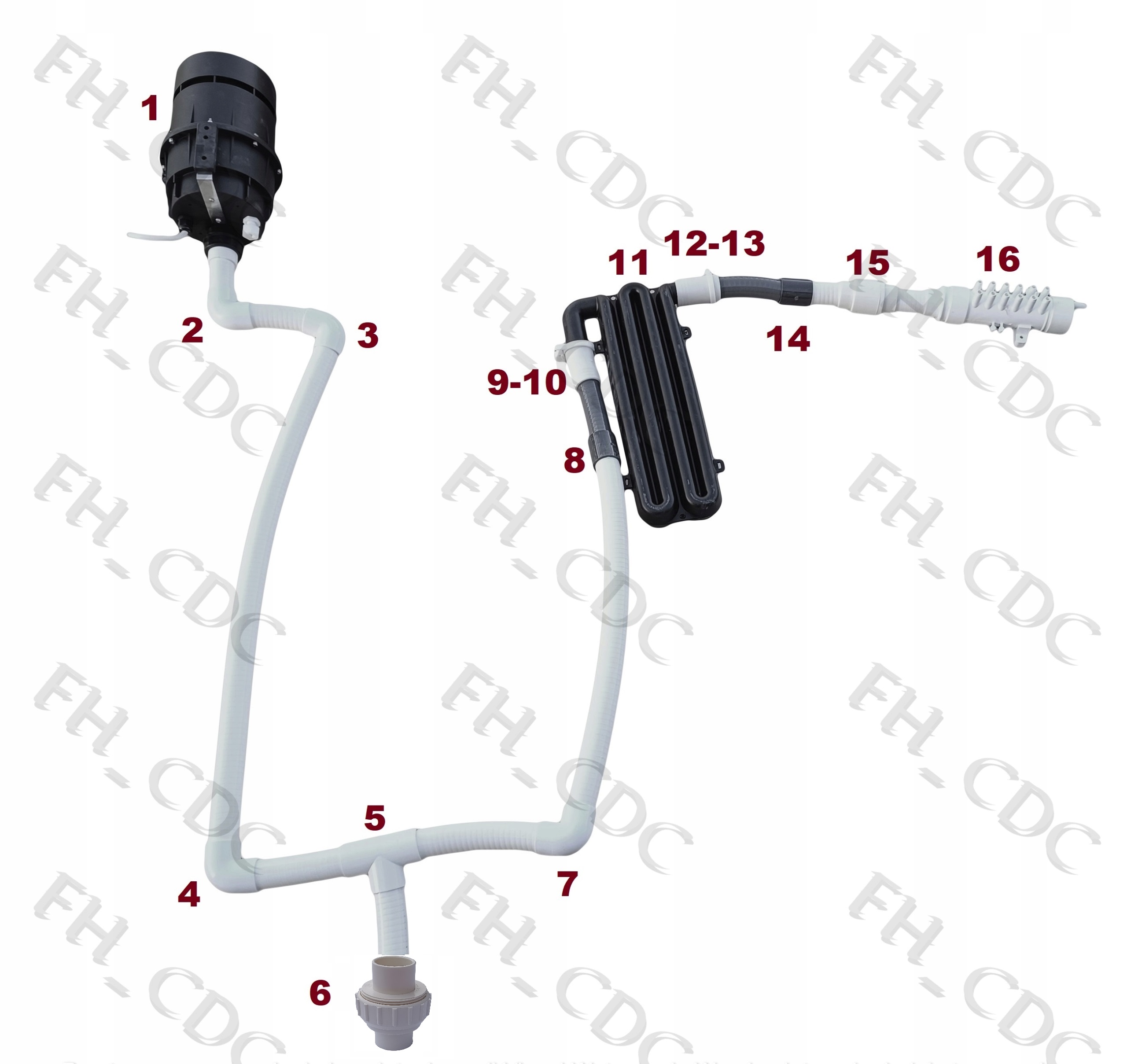Syfon to nie tylko sam syfon w sobie, to także szereg muf i redukcji które pozwolą stosunkowo prosto podłączyć go do systemu z pompą. Syfon ma na celu utrudnienie dostania się ewentualnej wody z wanny/balii do pompy.