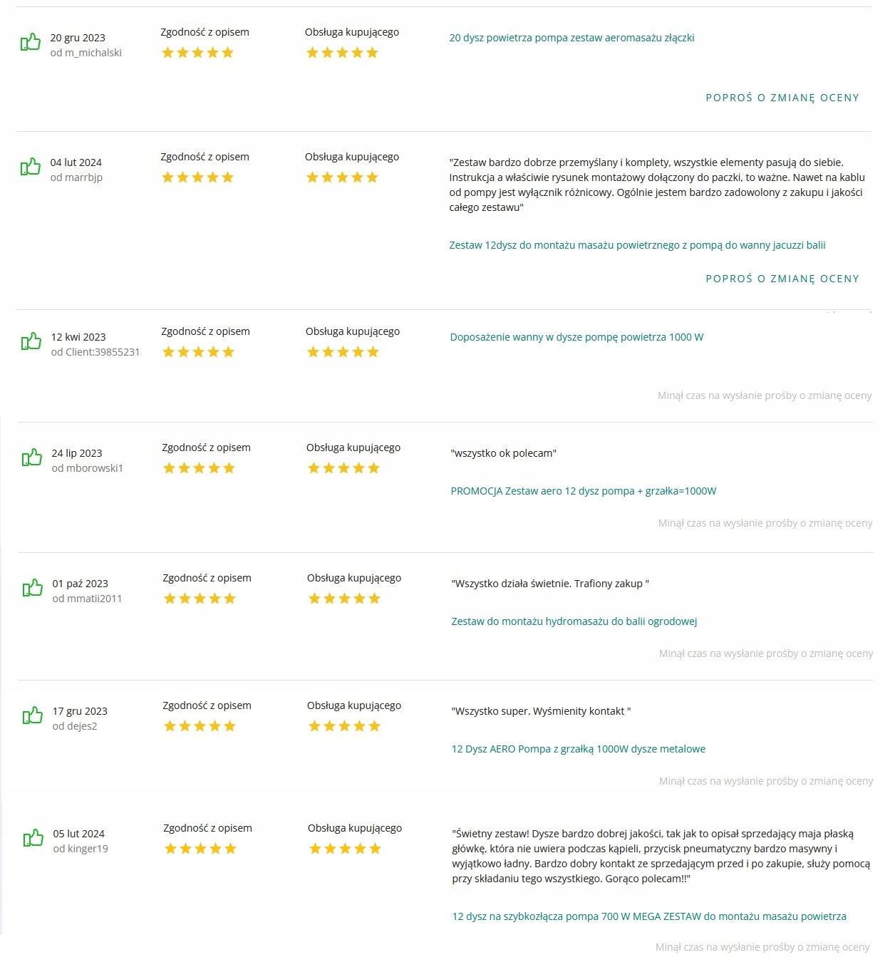 - Posiadamy 100 % pozytywnych opinii od naszych Kupujących…a poniżej przedstawionych jest kilku zadowolonych naszych Klientów, którzy już zakupili u nas dany zestaw do masażu z pompą i dyszami: