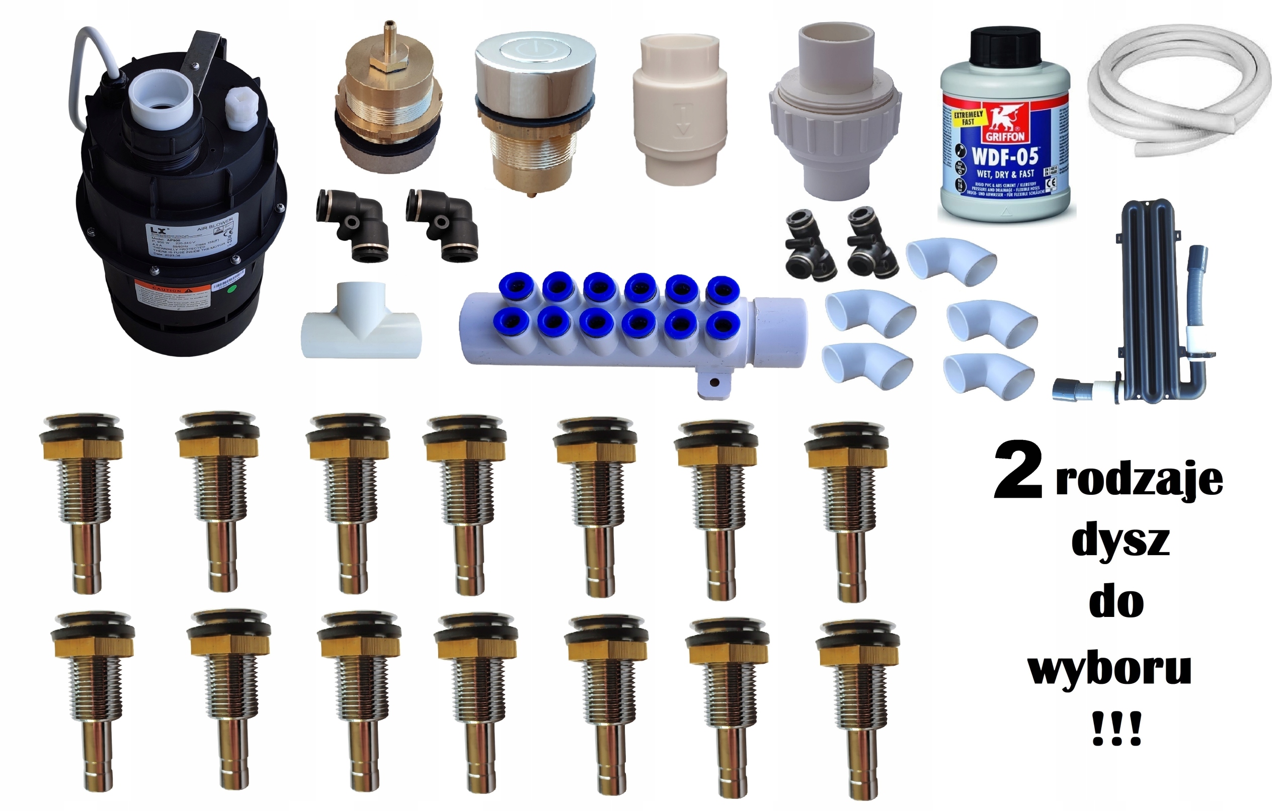 MEGA ZESTAW 14 dysz pompa powietrza 700 W do montażu bąbelków balii wannie