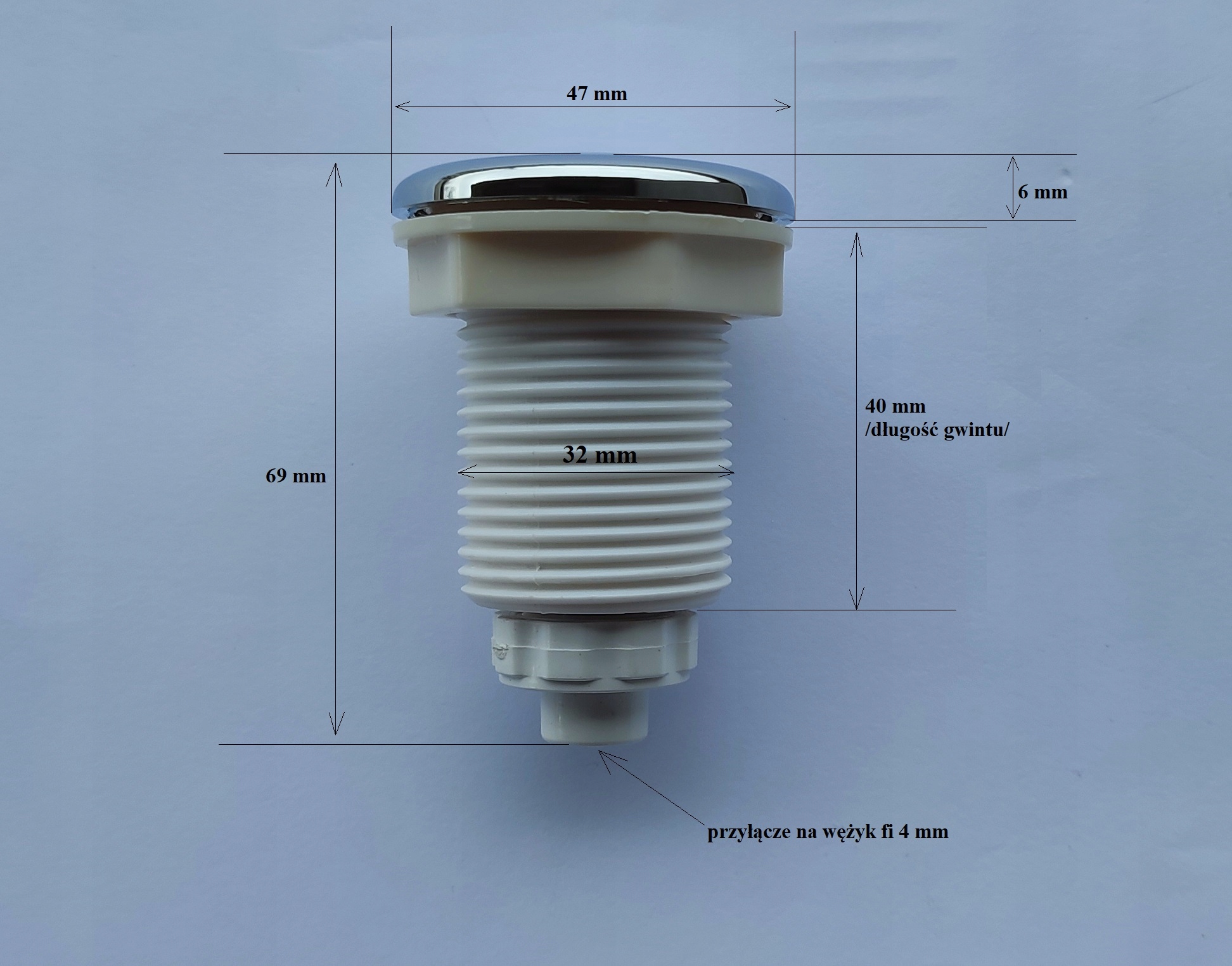 PNEUMATYCZNY PRZYCISK wyłącznik do młynka pompy wanny CHROM otwór 32 mm P2