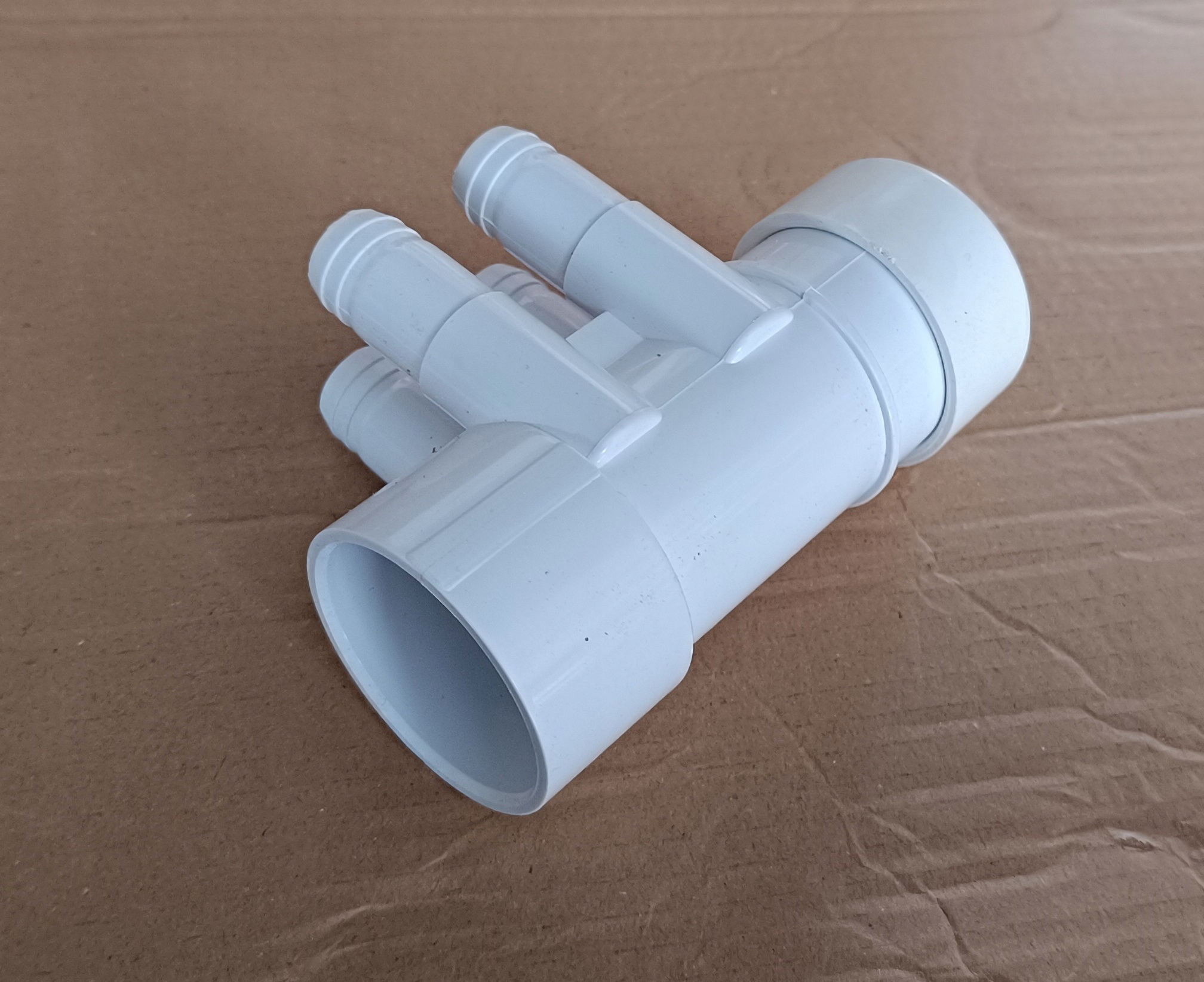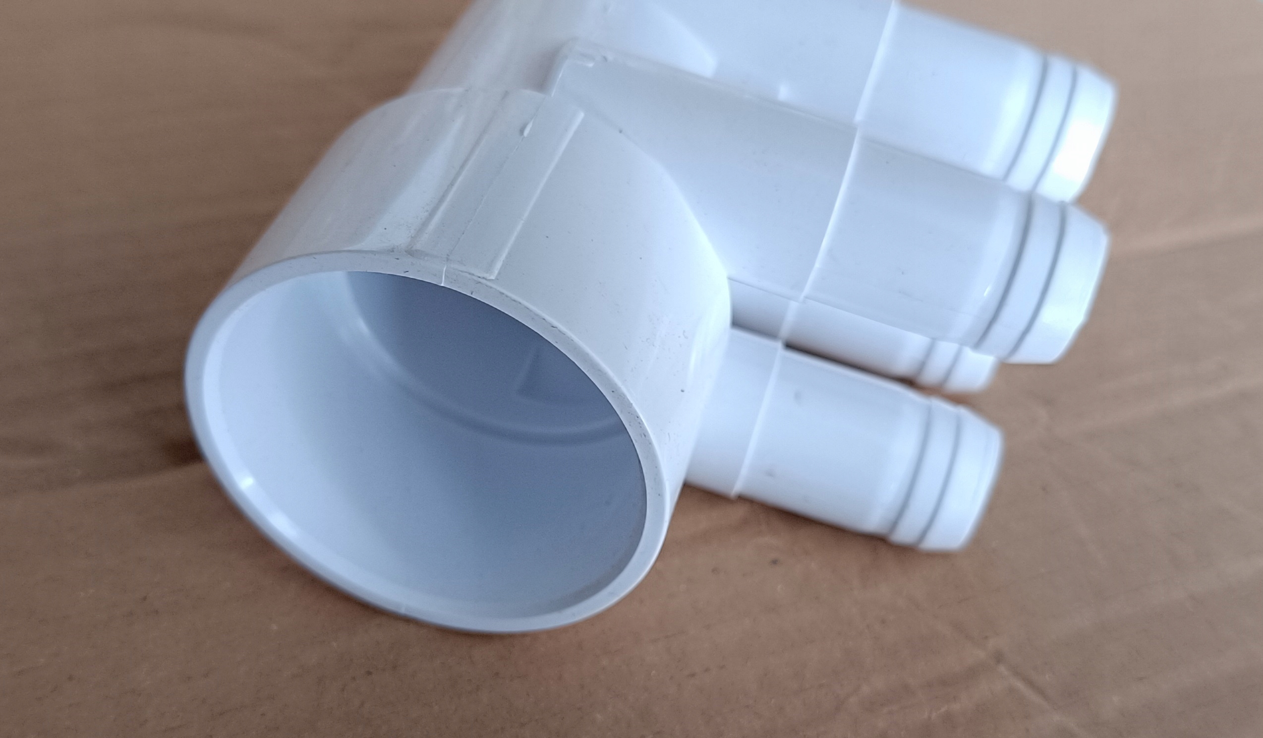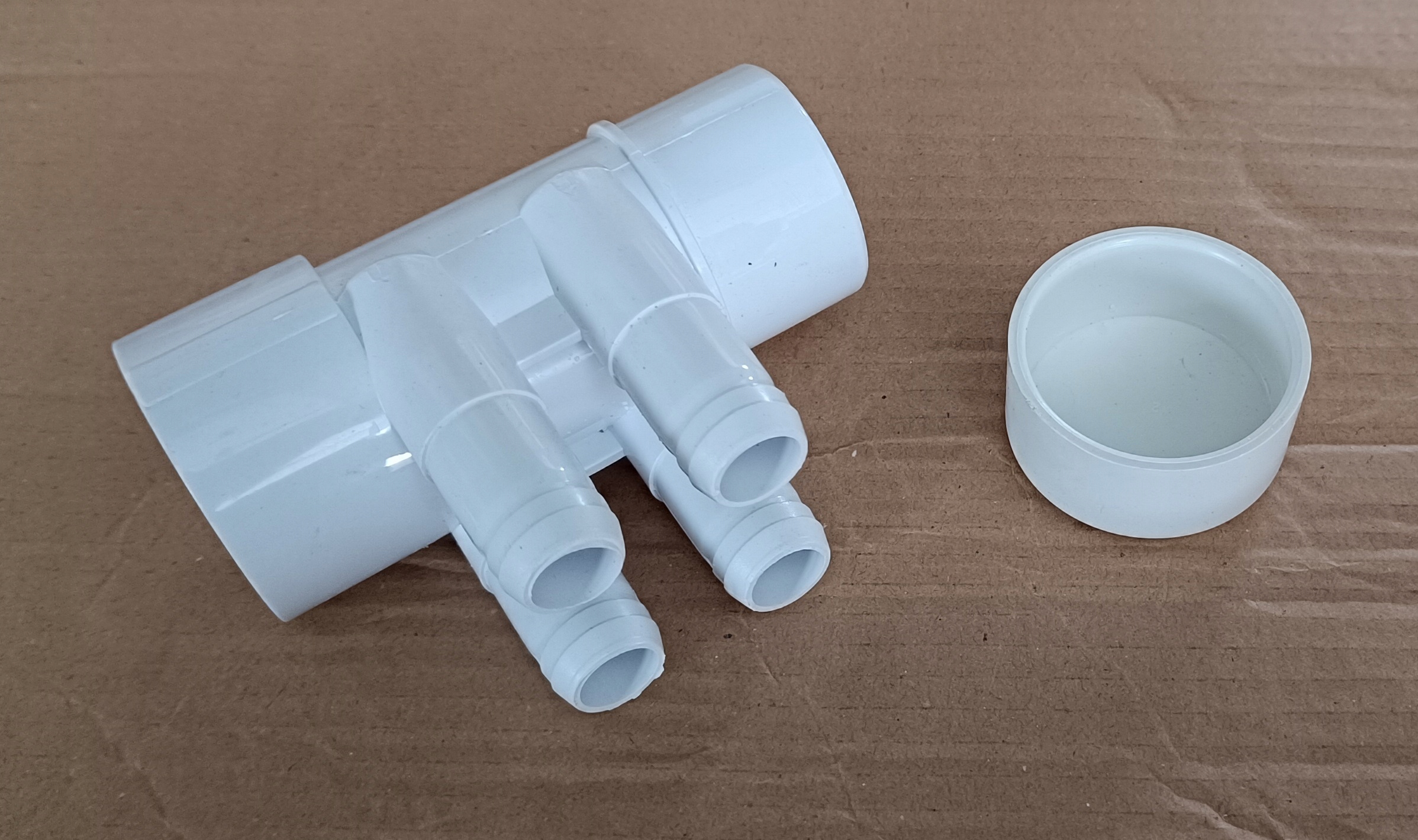 Rozdzielacze można swobodnie łączyć ze sobą, jeden wchodzi w drugi, w razie konieczności rozdzielenia powietrza z dmuchawy na 8-12 dysz potrzebne są 2-3 rozdzielacze, które klei się klejem do PVC