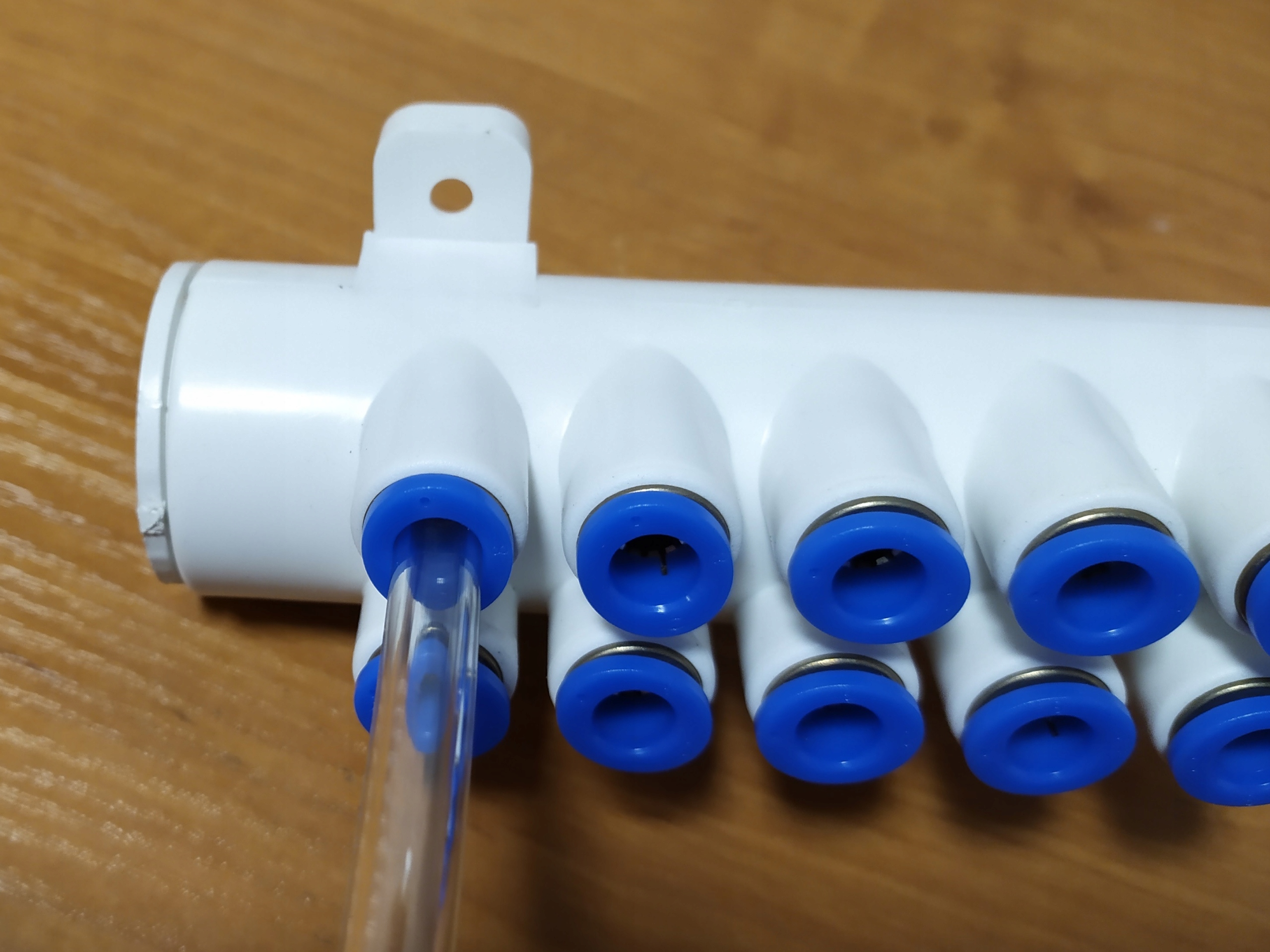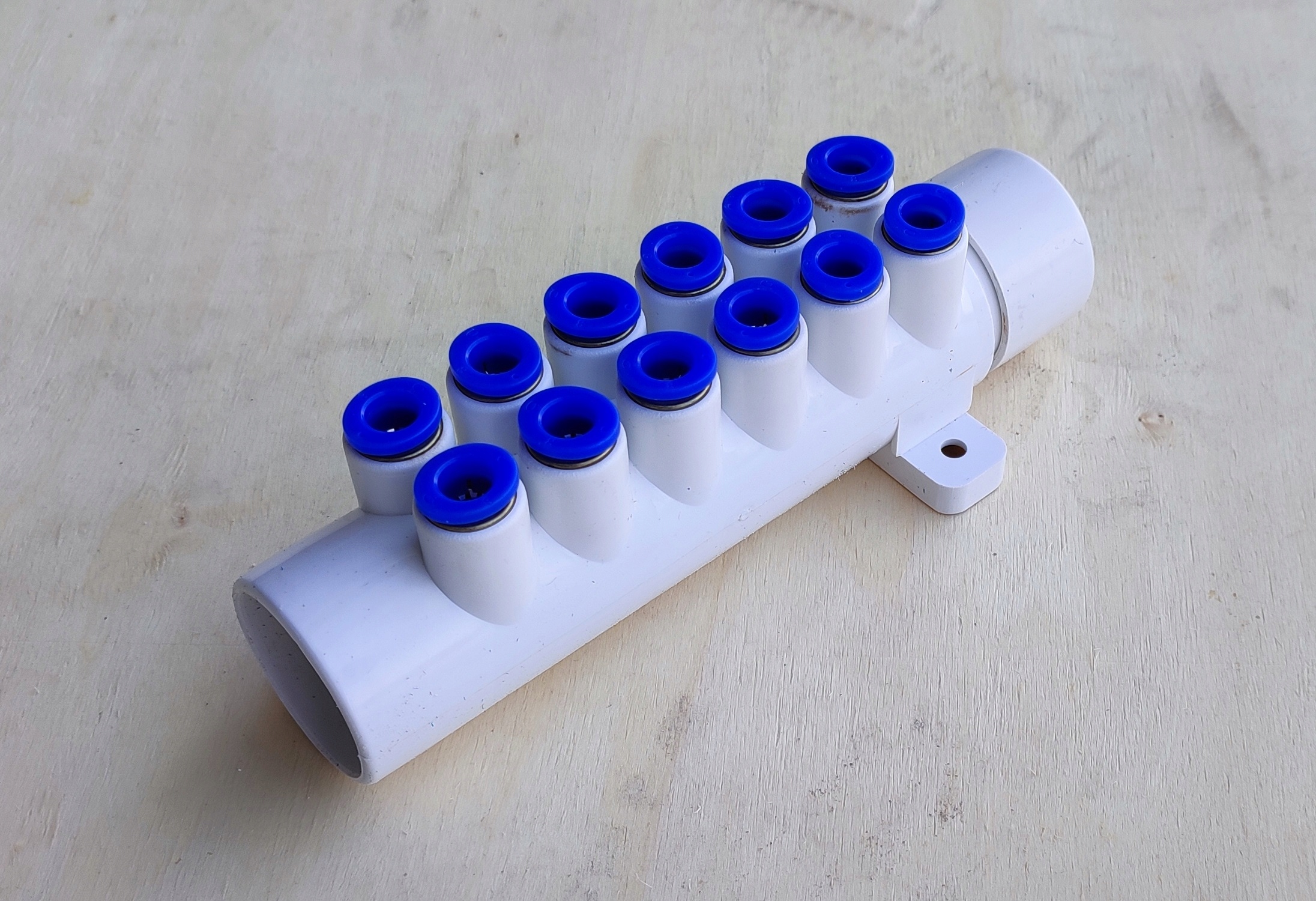 Przedmiotem aukcji jest rozdzielacz, kolektor, dystrybutor powietrza na szybkozłączki. Rozdzielacz ten służy do rozdzielania powietrza na dysze powietrza z pompy. Posiada zainstalowane już w środku szybkozłącza do których w prosty sposób wpina się wężyk o odpowiedniej średnicy, w tym wypadku powinien to być wężyk o średnicy zewnętrznej fi 8 mm.